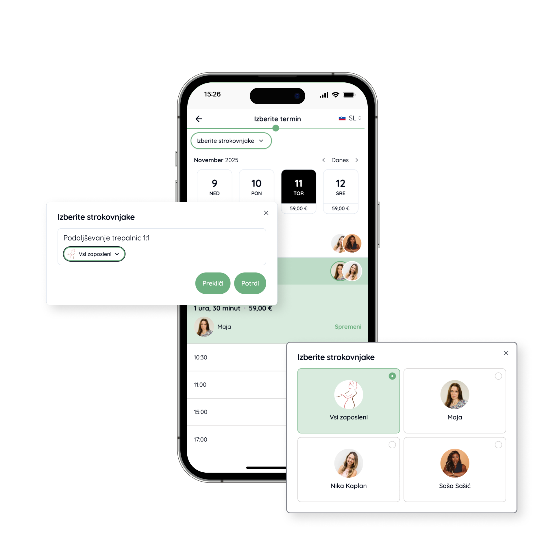Na obrazcu za spletno naročanje lahko vaše stranke zdaj enostavno filtrirajo proste termine glede na izbranega izvajalca. Če ima vaš salon več zaposlenih, se ob izbiri določenega izvajalca prikažejo le njegovi prosti termini – kar poenostavi rezervacijo in zmanjša možnost zmede pri razporejanju.