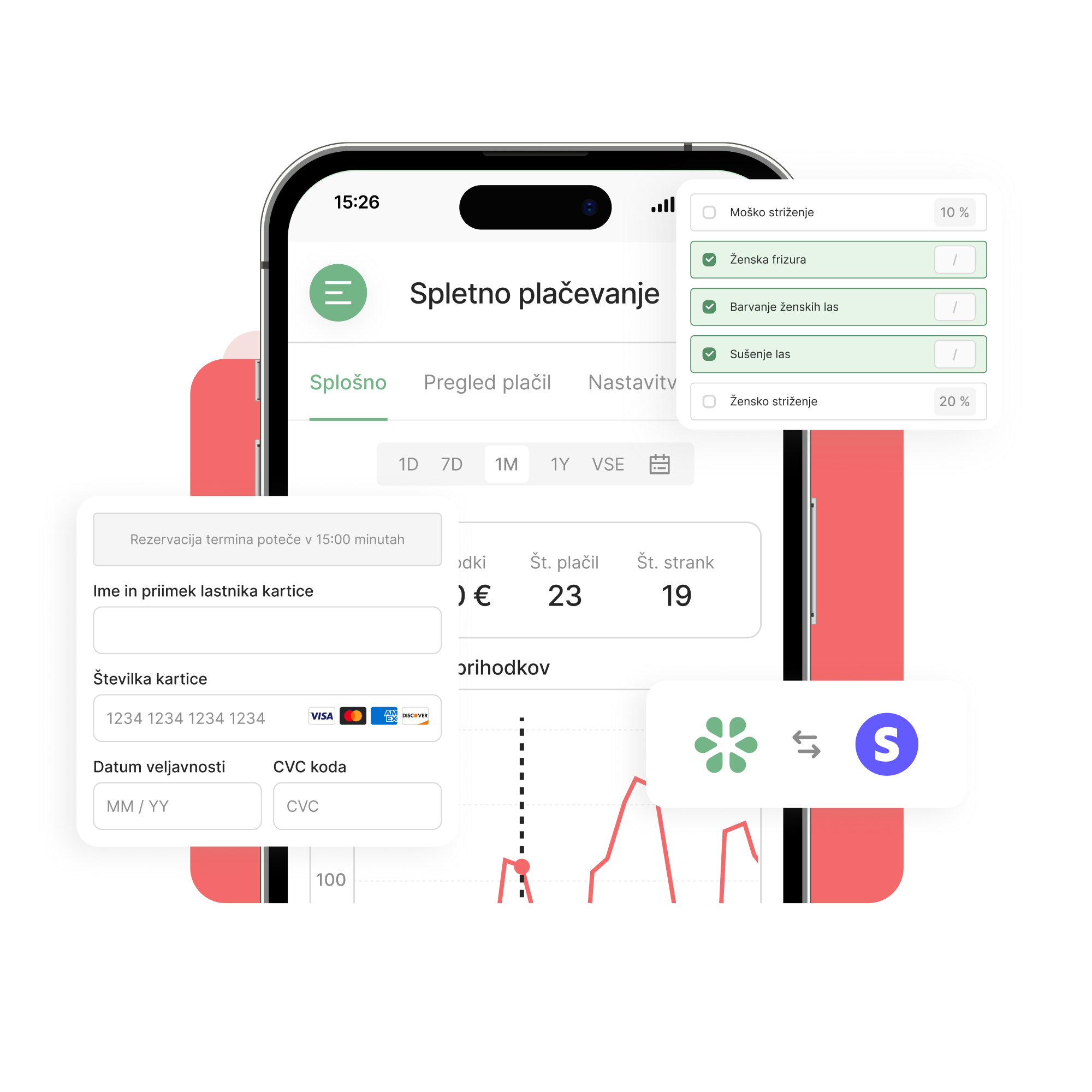 - stranke same poiščejo proste termine,